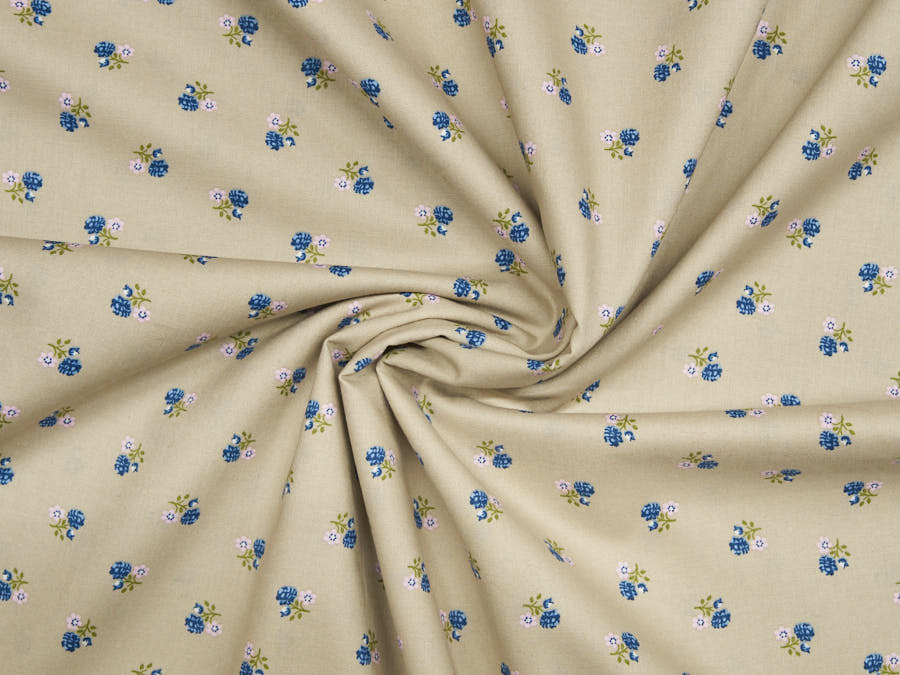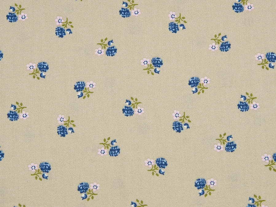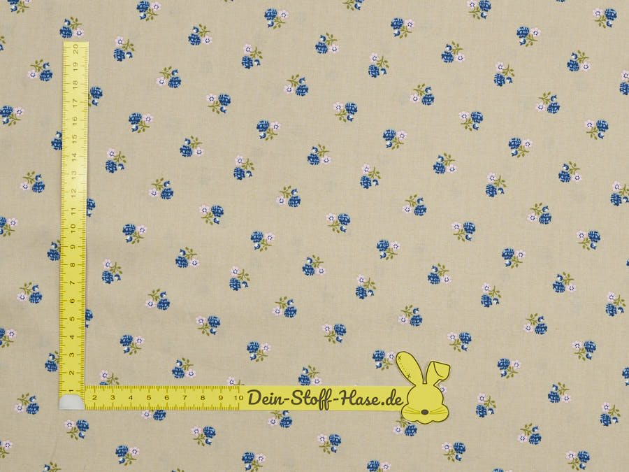 Trachtenstoff beige, rosa & blaue Blümchen